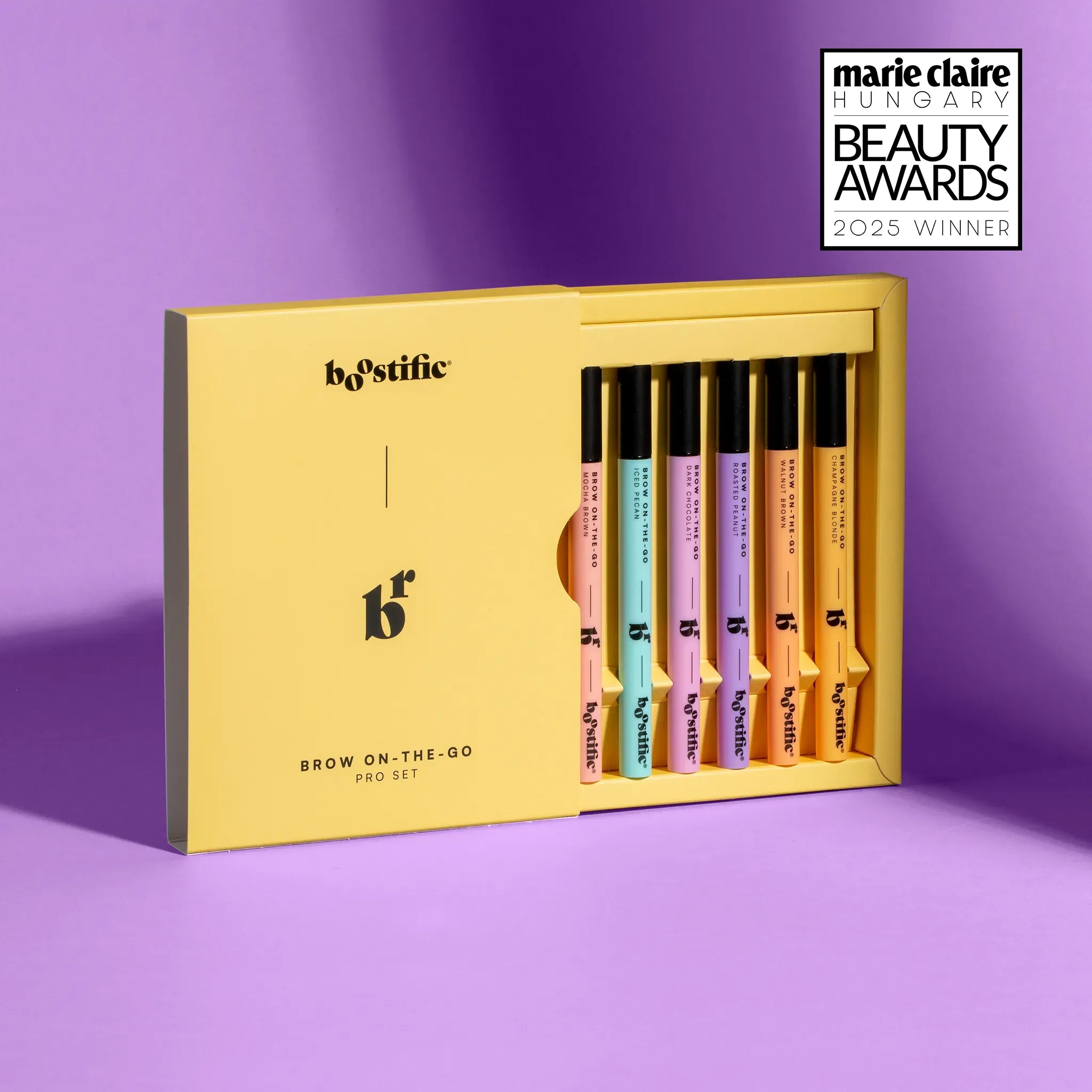 Kompletná farebná paleta: Sada obsahuje všetky odtiene – Mocha Brown, Iced Pecan, Dark Chocolate, Roasted Peanut, Walnut Brown a Champagne Blonde – takže si vždy nájdeš perfektný odtieň pre každý typ pokožky alebo farbu vlasov.